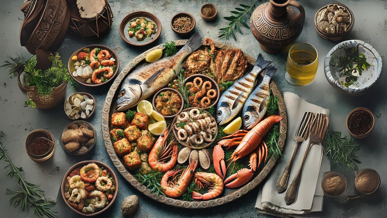 Eggplant, zucchini, potatoes, and peppers combined with tomatoes and garlic, seasoned with olive oil and regional spices.